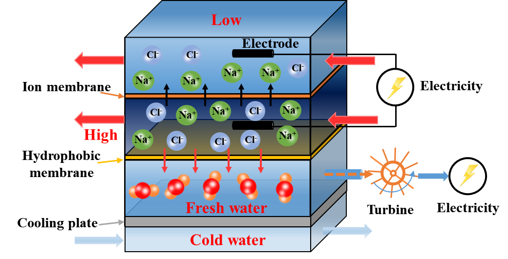热渗透与纳米流体反向电渗析协同利用低品位热能与盐度梯度实现水电联产