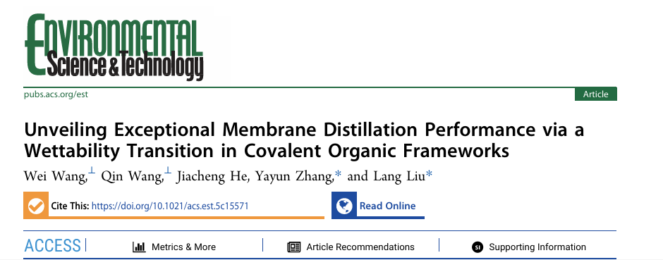 浸润性转变COF膜实现膜蒸馏性能新突破