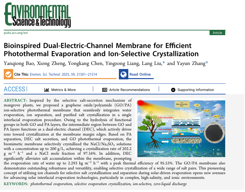 《用于高效光热蒸发和离子选择性结晶的仿生双电通道膜》