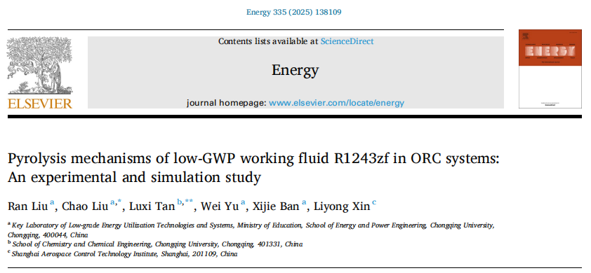 《低GWP工质R1243zf在ORC系统中的热解机制:实验与模拟研究》