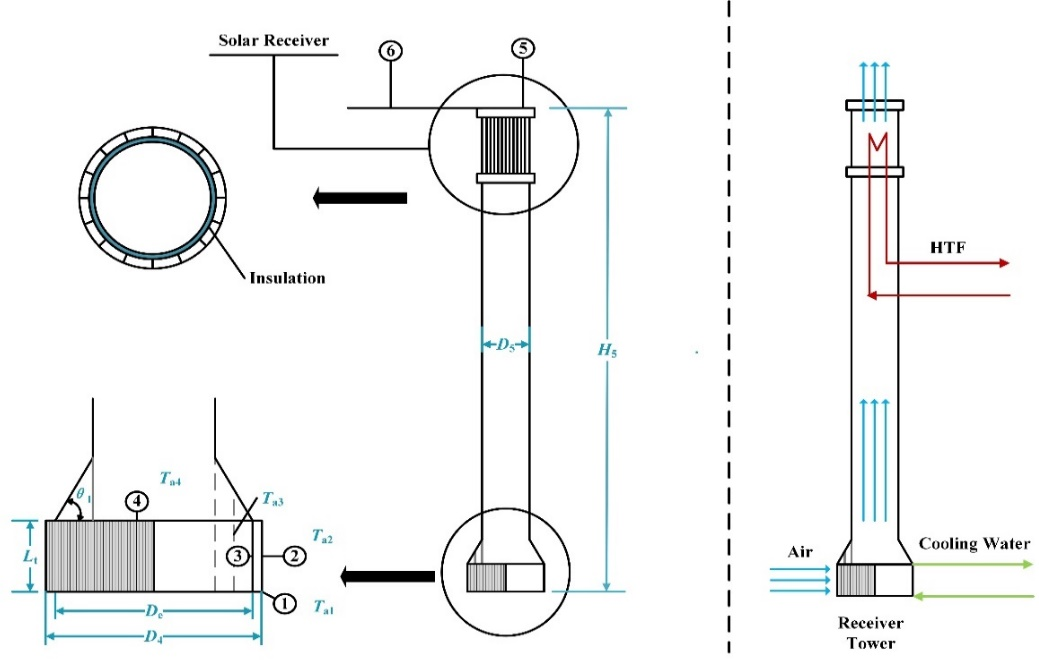 图1. 塔式太阳能吸热塔和空冷换热器耦合结构示意图